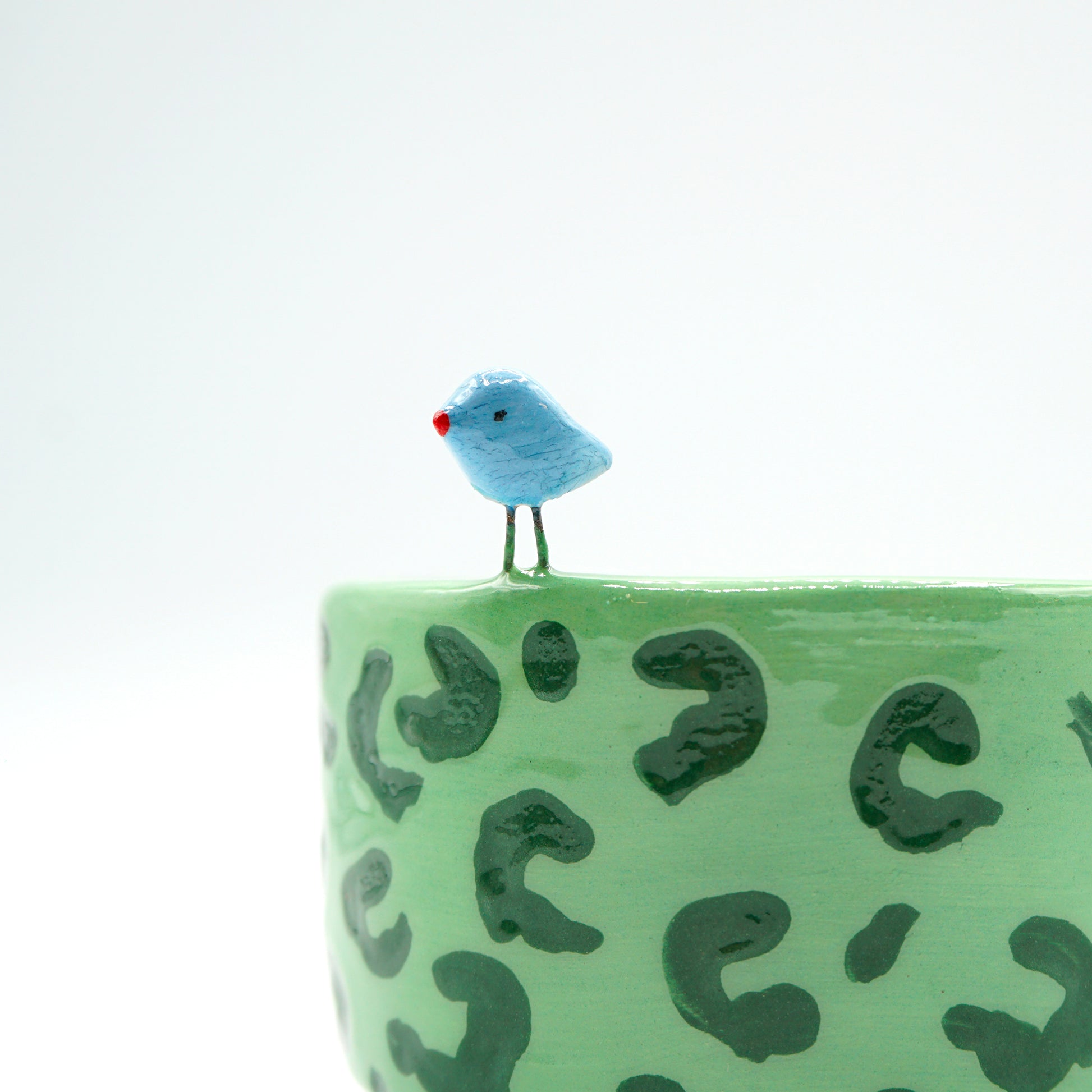 Tazzina “Birds” in ceramica con uccellino - decoro Camouflage