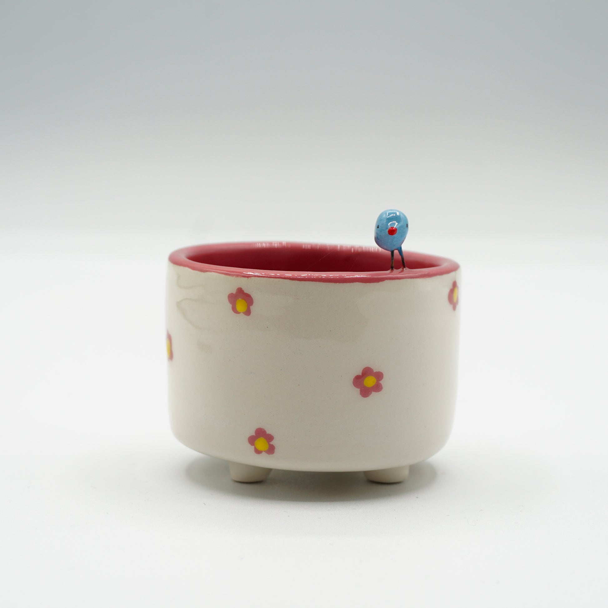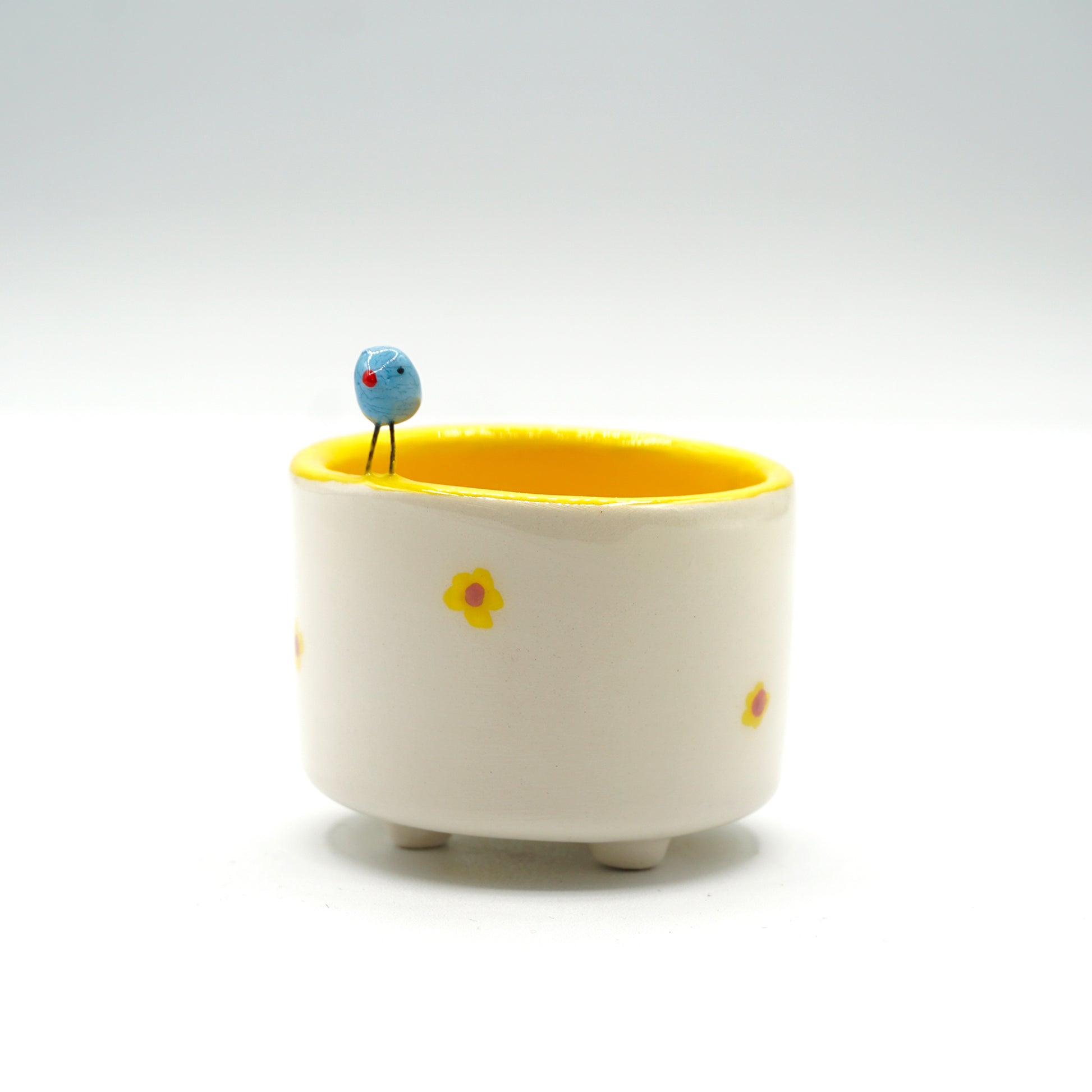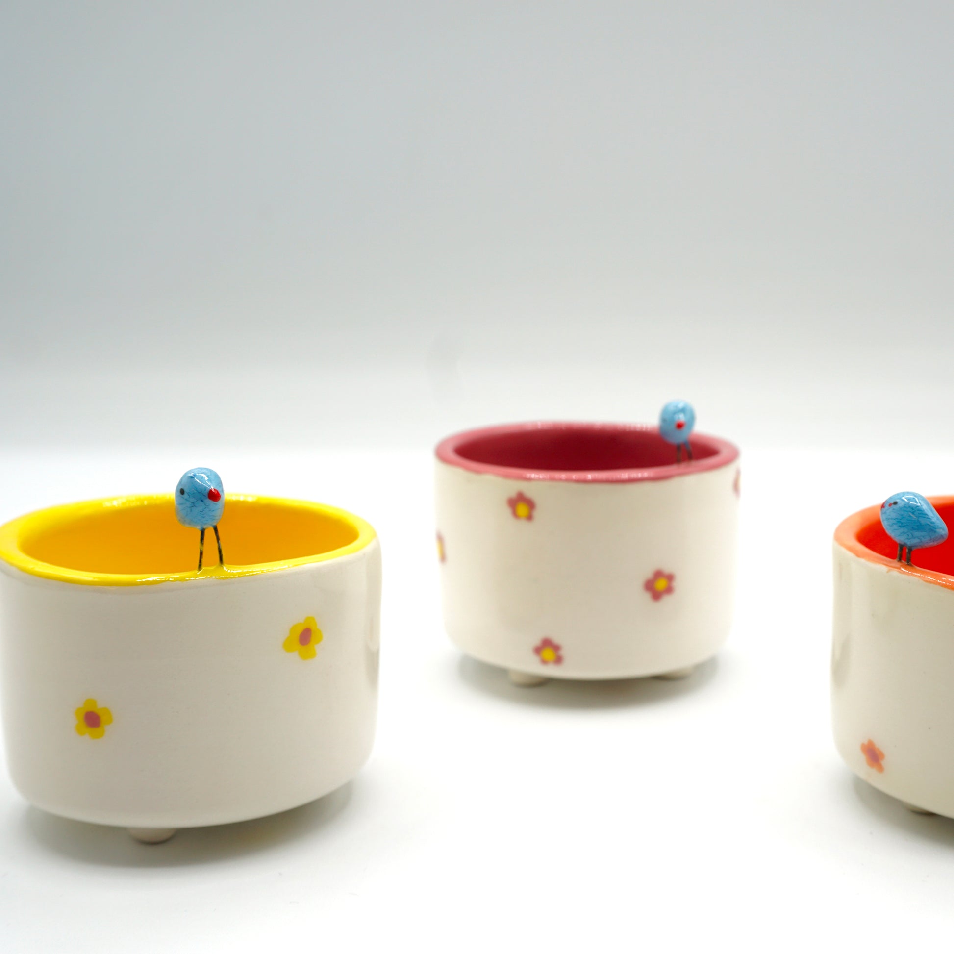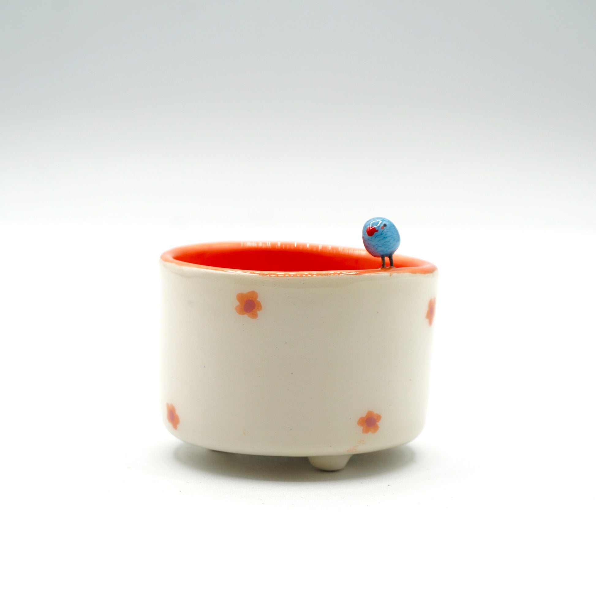 Tazzina “Birds” in ceramica con uccellino - decoro Fiorellini